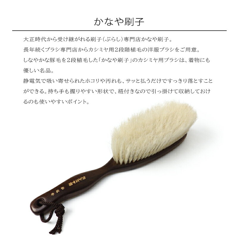 しなやかな豚毛を2段植毛した「かなや刷子」のカシミヤ用ブラシは、着物にも優しい名品。