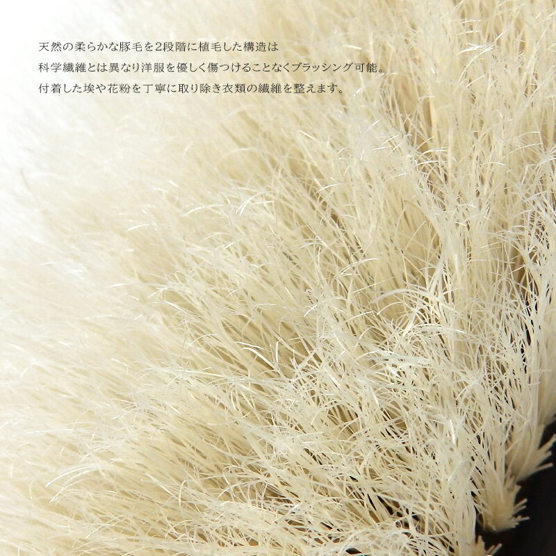 ◆ 品質(素材) 持ち手:天然木 毛:豚毛 ◆ サイズ 巾65×全長275×高60mm ◆ 生産国 日本製 【 ブラシでのメンテナンスが大切 】 洋服や帽子、マフラーなどはを長く着るために、ブラッシングを欠かすことはできません。