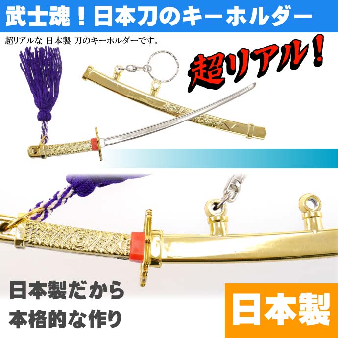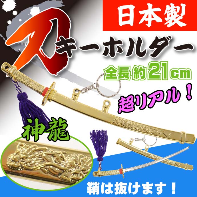 送料無料 キーホルダー 神龍刀21cm 金 日本製 お土産プレゼントに最適 刀のキーホルダー ms140