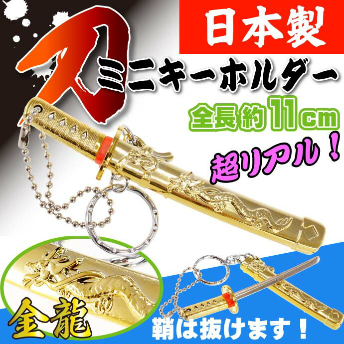 送料無料 キーホルダー 神龍刀11cm 金 日本製 お土産プレゼントに最適 刀のキーホルダー ms139