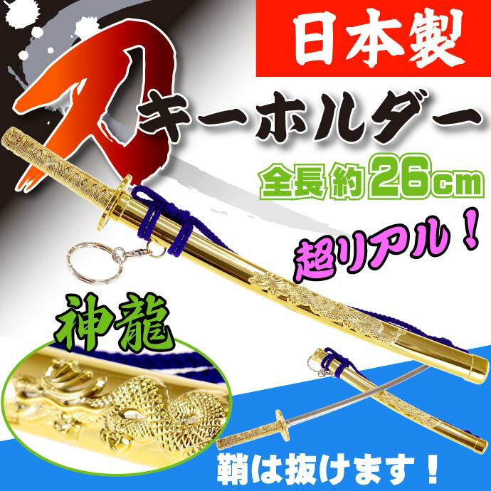 送料無料 キーホルダー 特大神龍刀26cm 金 日本製 お土産プレゼントに最適 刀のキーホルダー ms117