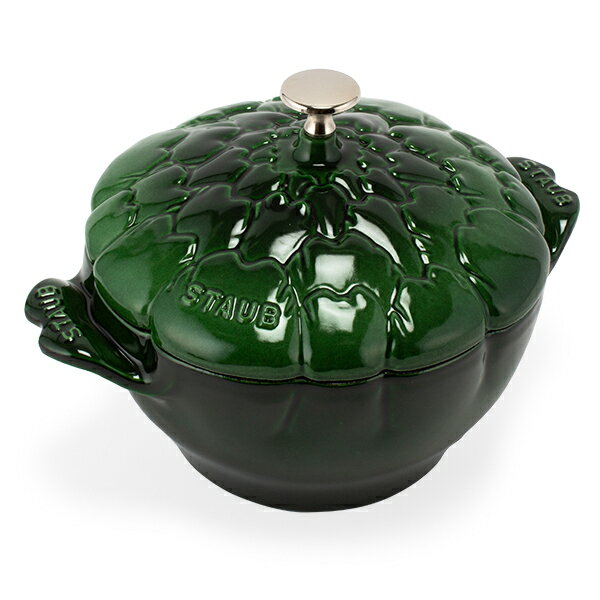 商品名ストウブ【Staub】アーティチョークココット 22cm カラーバジルグリーン(11152285) サイズ約高さ19.6×幅29×長さ22.2cm、直径約22cm重量:2.6kg容量:3L 素材鋳鉄ホーロー 商品について【アーティチョークココット】アーティチョークの形をした、ユニークでとってもキュートな両手鍋です。