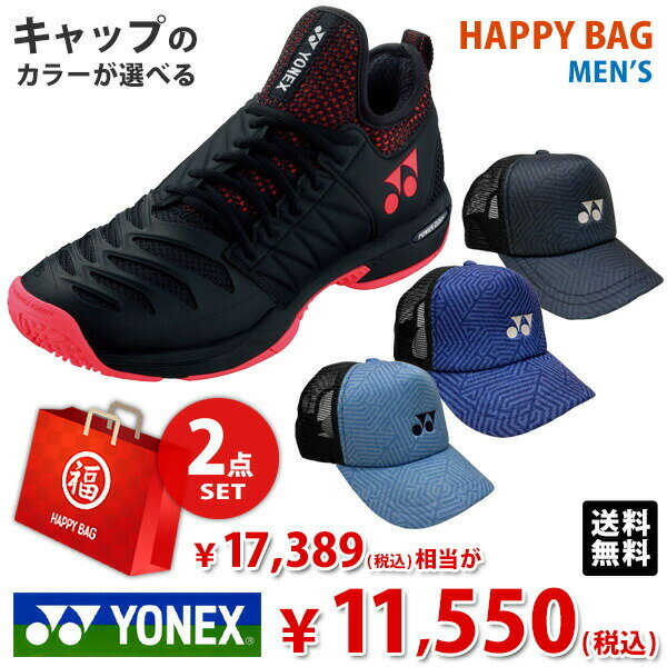 【エントリーで全品ポイント10倍▲〜3/1 9:59】キャップのカラーが選べる!シューズhappybag 福袋 2点セット ヨネックス YONEX テニスシューズ メンズ パワークッションフュージョンレブ3 メン GC オムニ・クレーコート用 SHTF3MGC-007